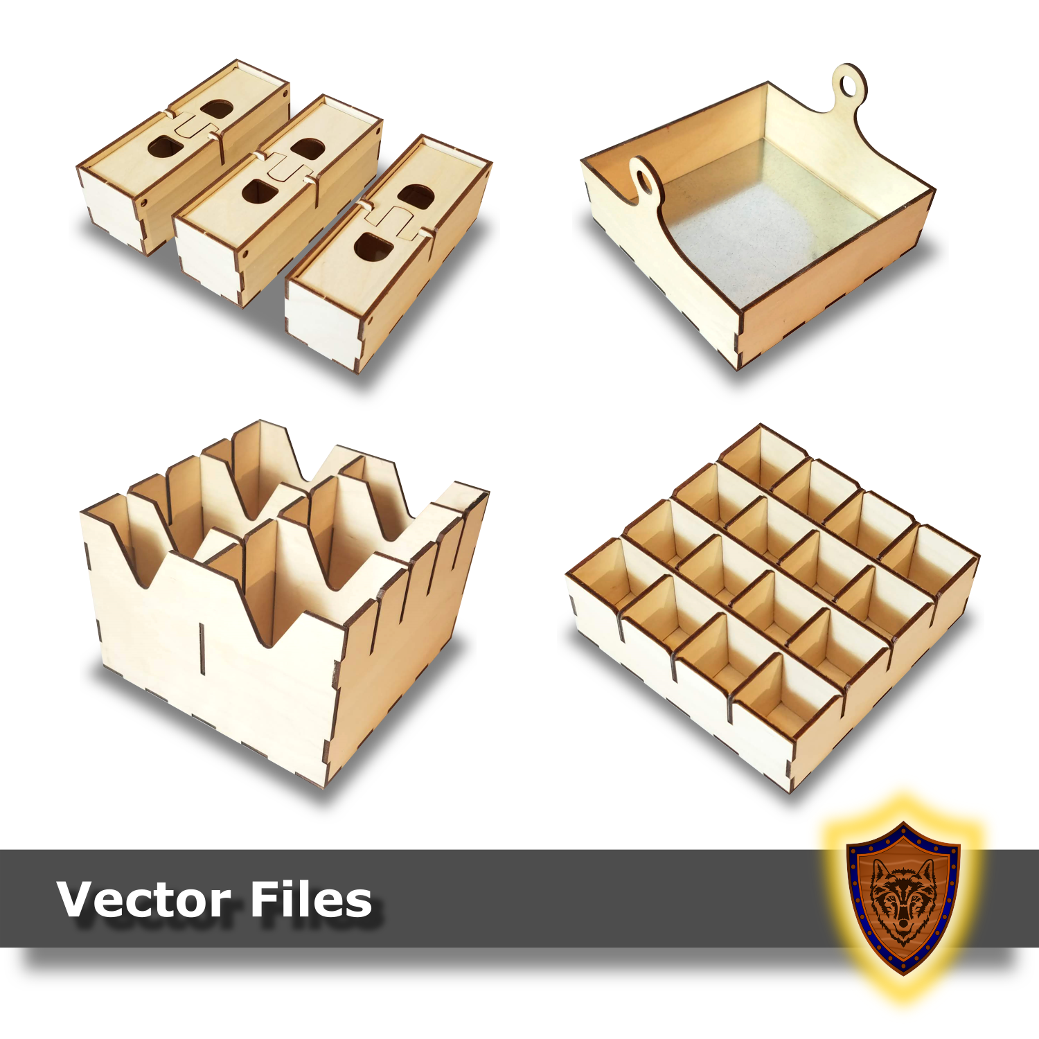 sThese Trays files are compatible with the Fantasy Boxes and are designed to add custom storage for cards, dice, miniatures, tokens and more.