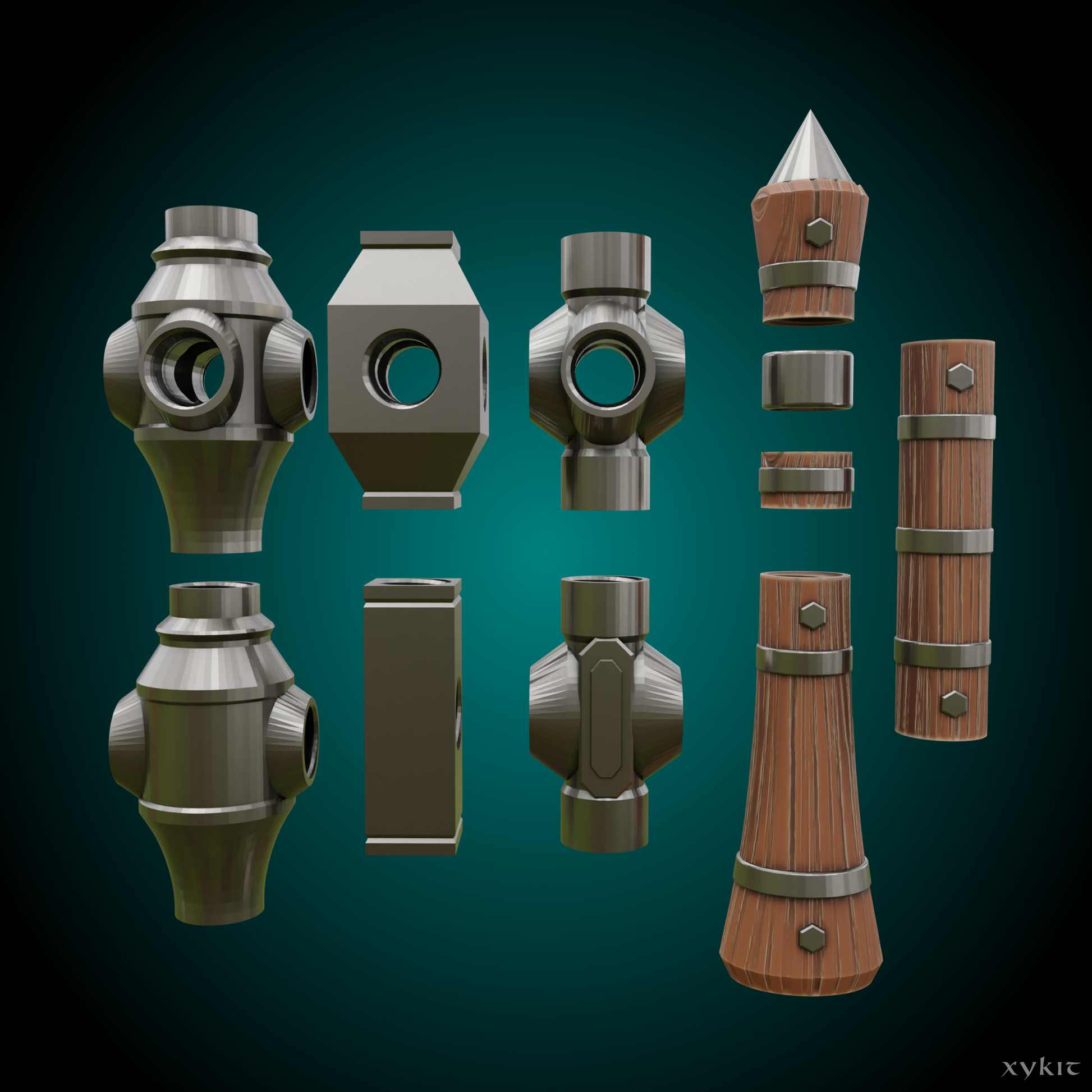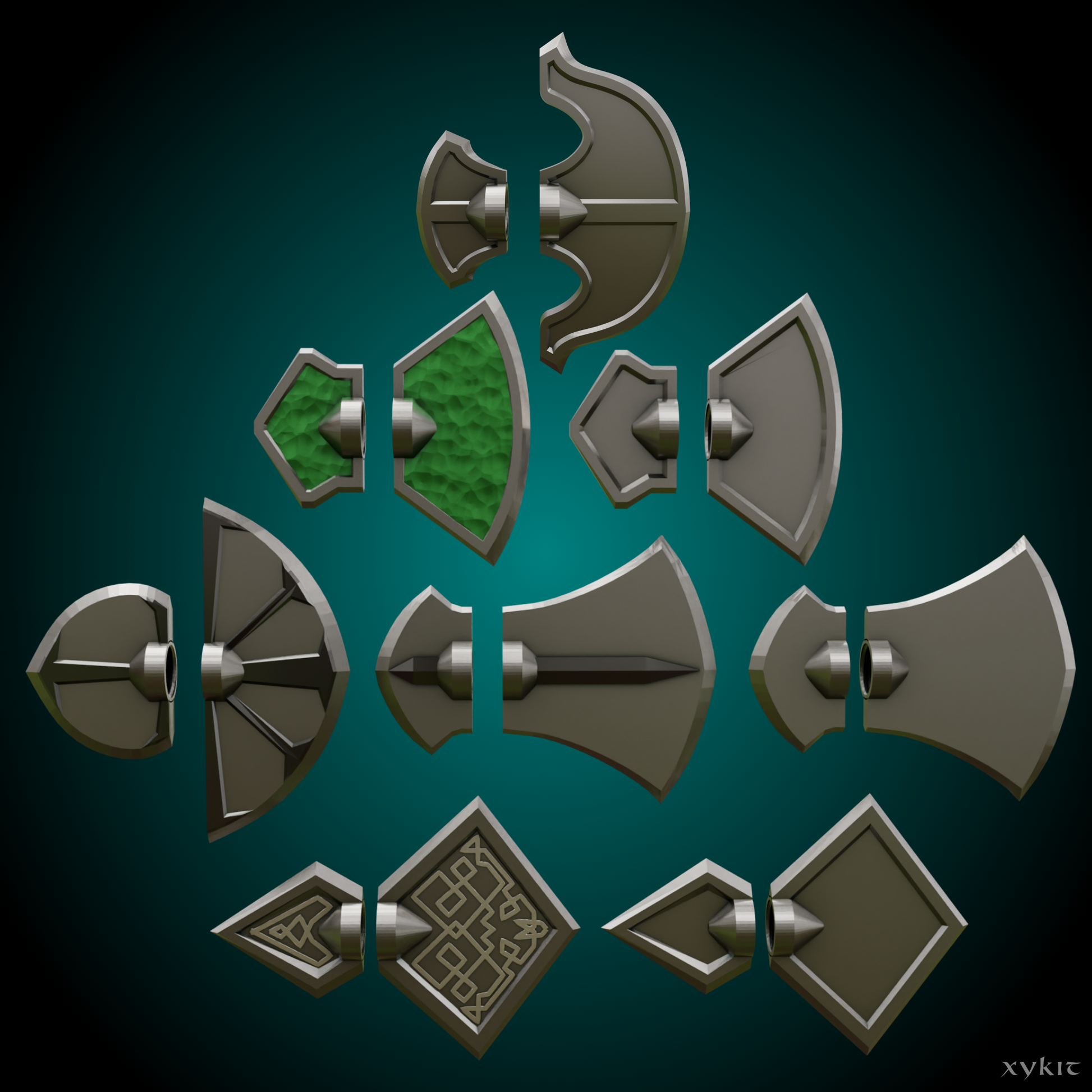 A collection of Axe Blades and pieces that can build a variety of axes.