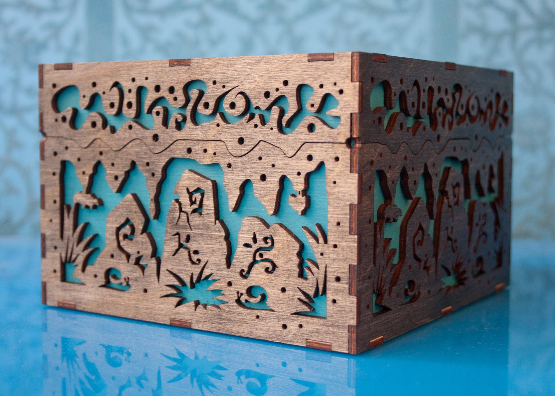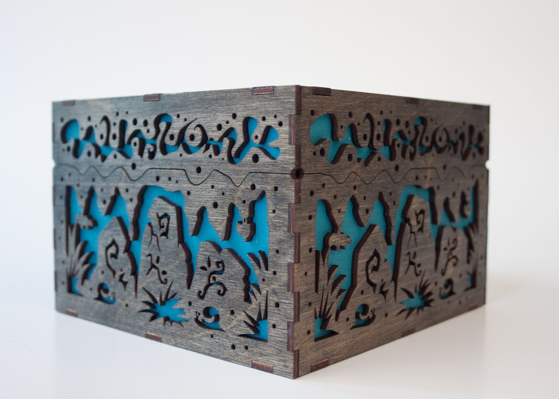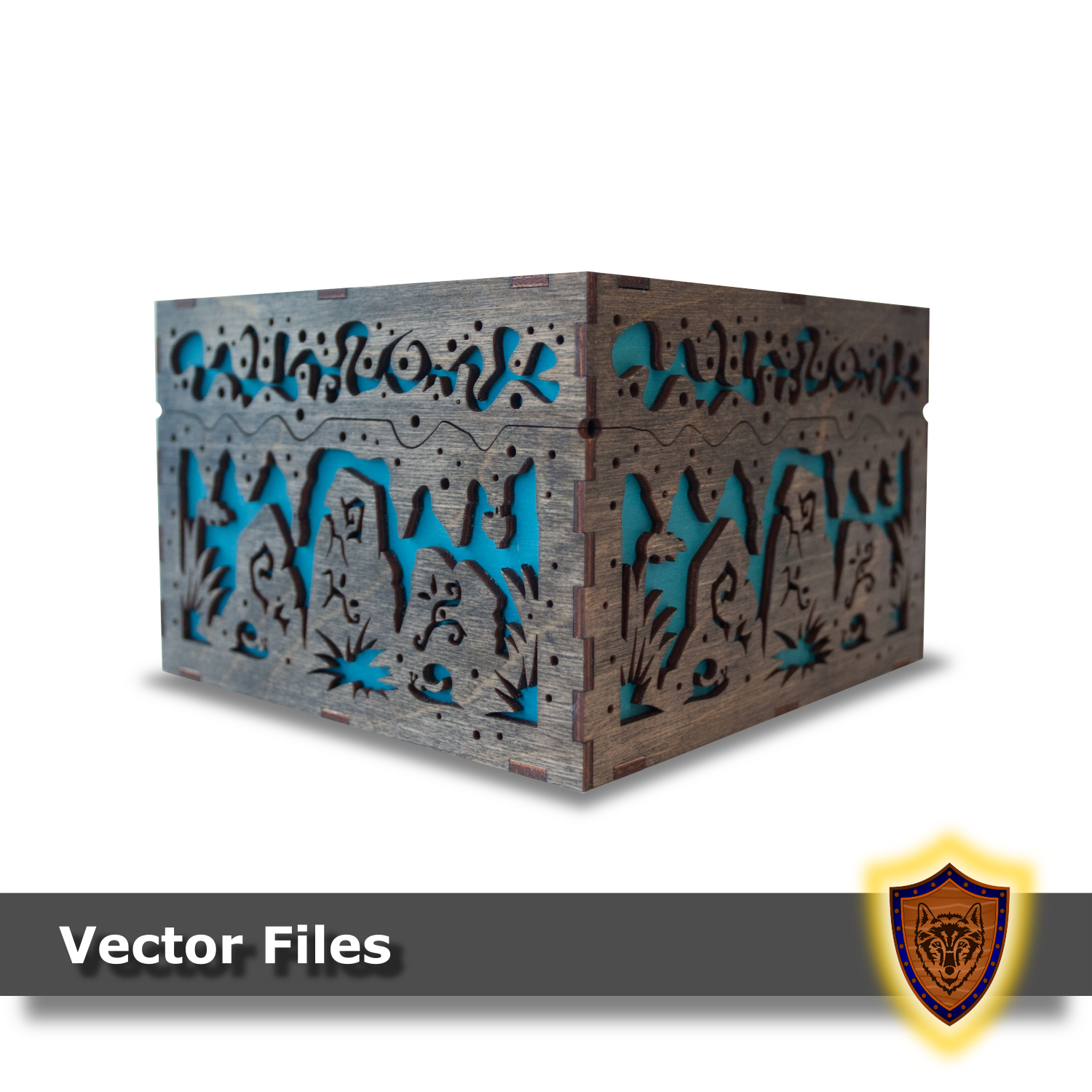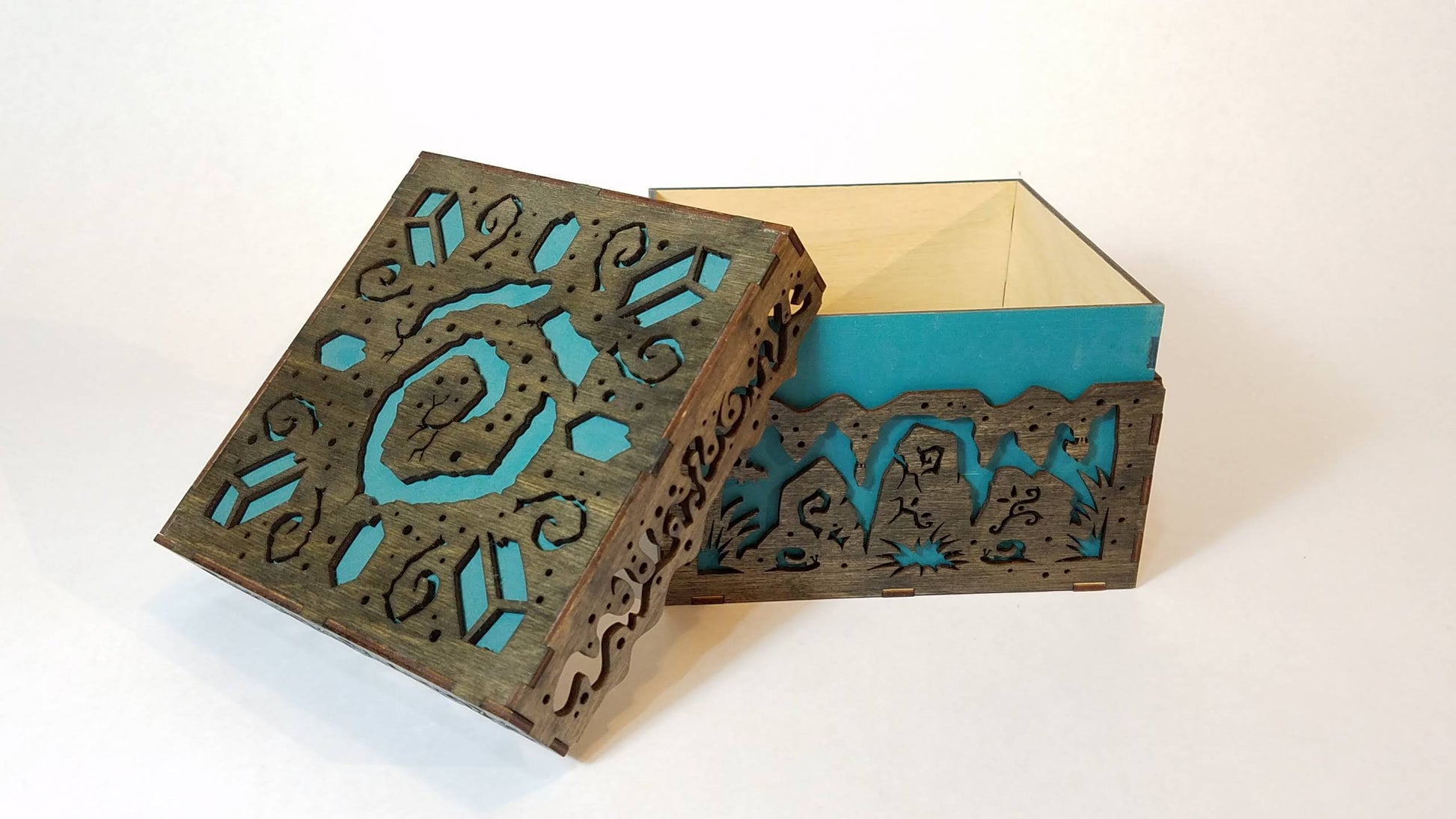 This intricately cut Fantasy Box design features Cave Troll motifs and is designed for gamers. It can be combined with our Fantasy Box Tray files (sold seperately) to add custom storage for cards, dice, miniatures, tokens and more.