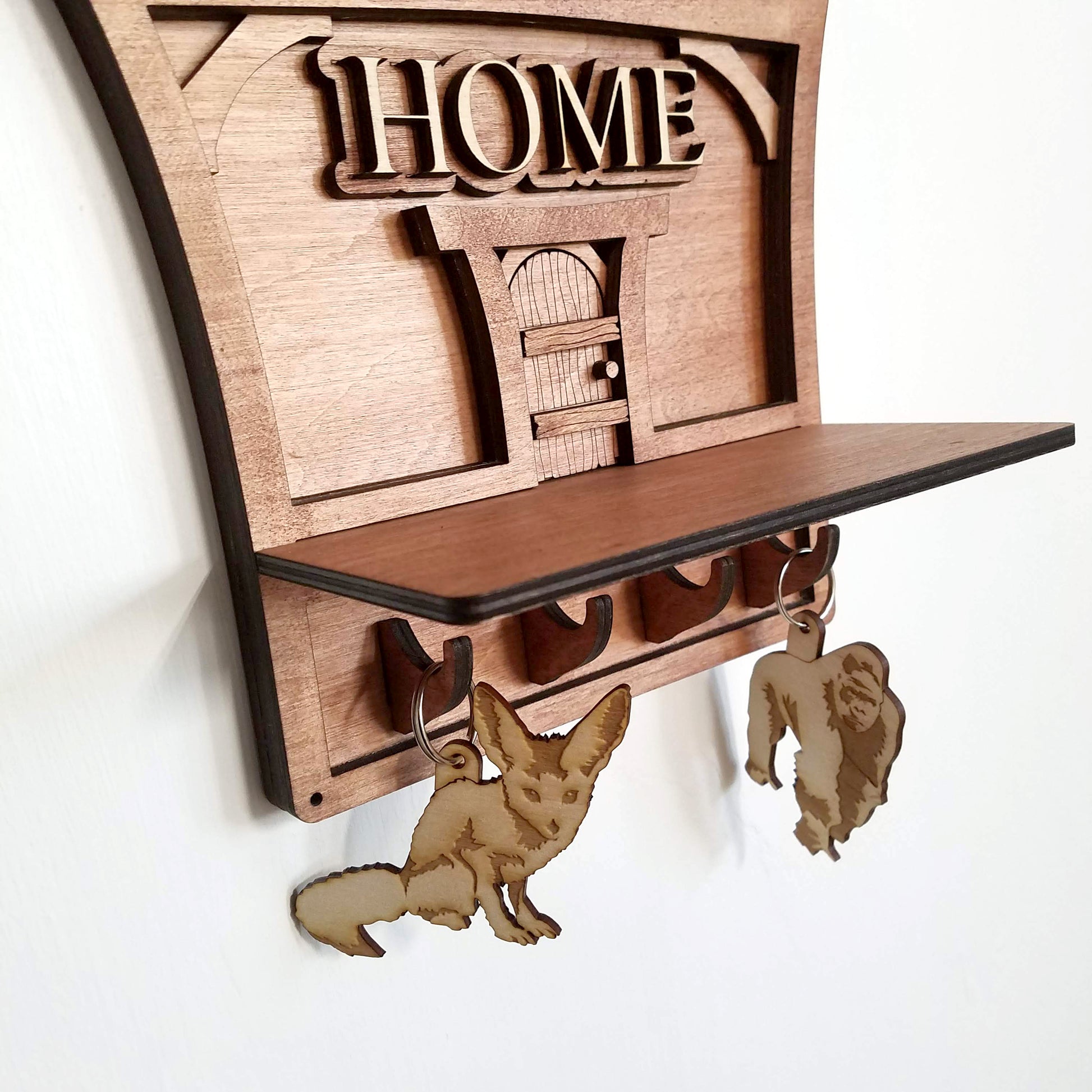 This listing is the digital file for cutting and making your very own laser cut "Home" Key Holder. You will receive a .zip file with the .svg, .eps and .dxf. This design is for use with 6mm thick material. This design requires glue: white glue, wood glue, or gel superglue. For best results, be sure to sand the pieces after laser cutting. This design can be made with two panels on a laser bed that is 300 mm x 500 mm (the largest individual piece is 269mm x 276mm).