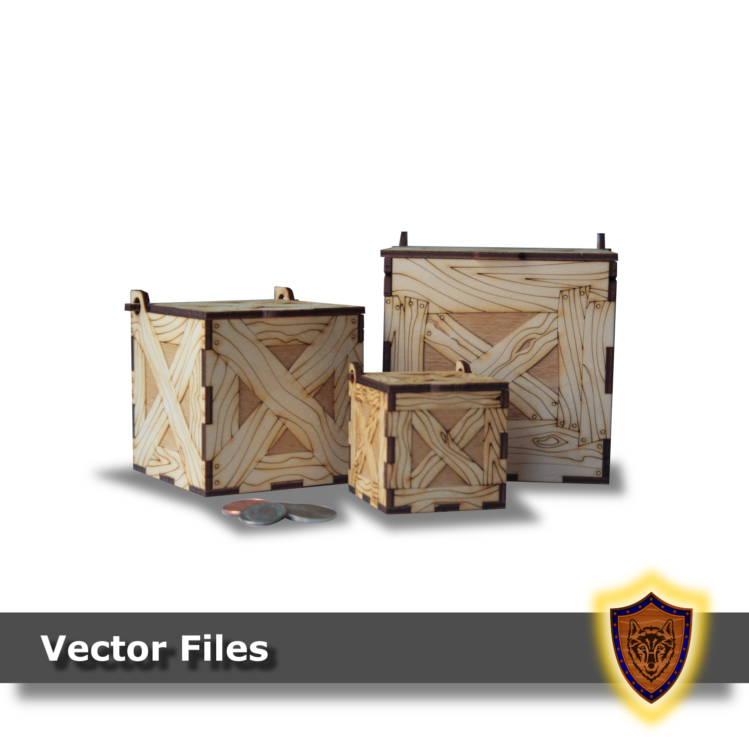 This listing is the digital files for cutting and making your very own laser cut wooden crates with lid. Three sizes are included 100mm, 75mm, 50mm. You will receive a .zip file with the .svg, .eps and .dxf. The boxes are designed to use 3mm thick material.
