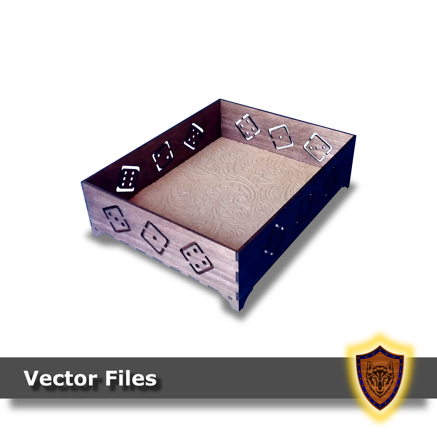 This listing is the digital file for cutting and making your very own laser cut dice tray. You will receive a .zip file with the .svg, .eps and .dxf. The tray is designed to use 3mm thick material. For best results, be sure to sand the pieces after laser cutting. There is also rectangle outline for cutting a fabric or felt piece to line the bottom.