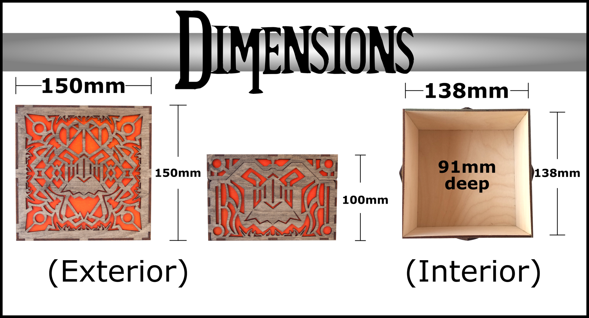 This intricately cut Fantasy Box design features Dwarven motifs and is designed for gamers. It can be combined with our Fantasy Box Tray files (sold seperately) to add custom storage for cards, dice, miniatures, tokens and more.