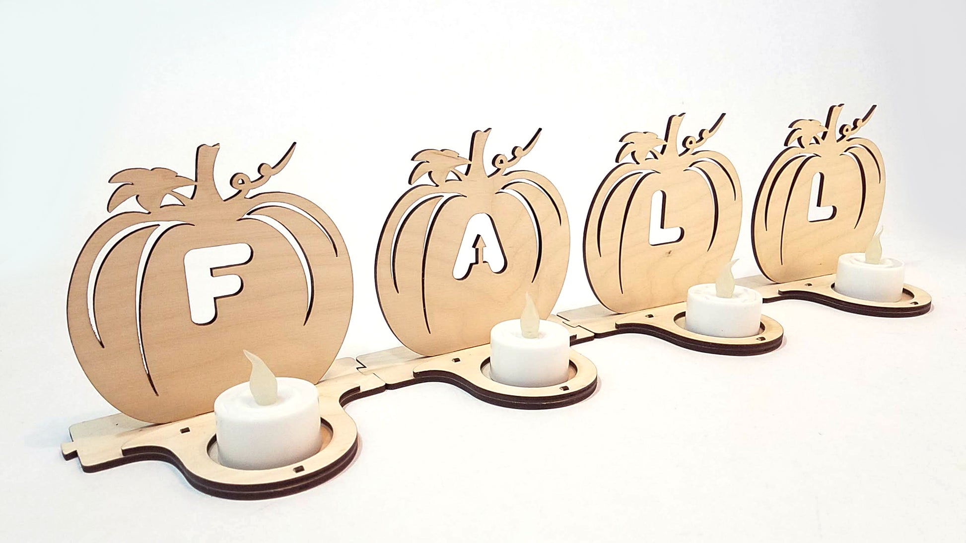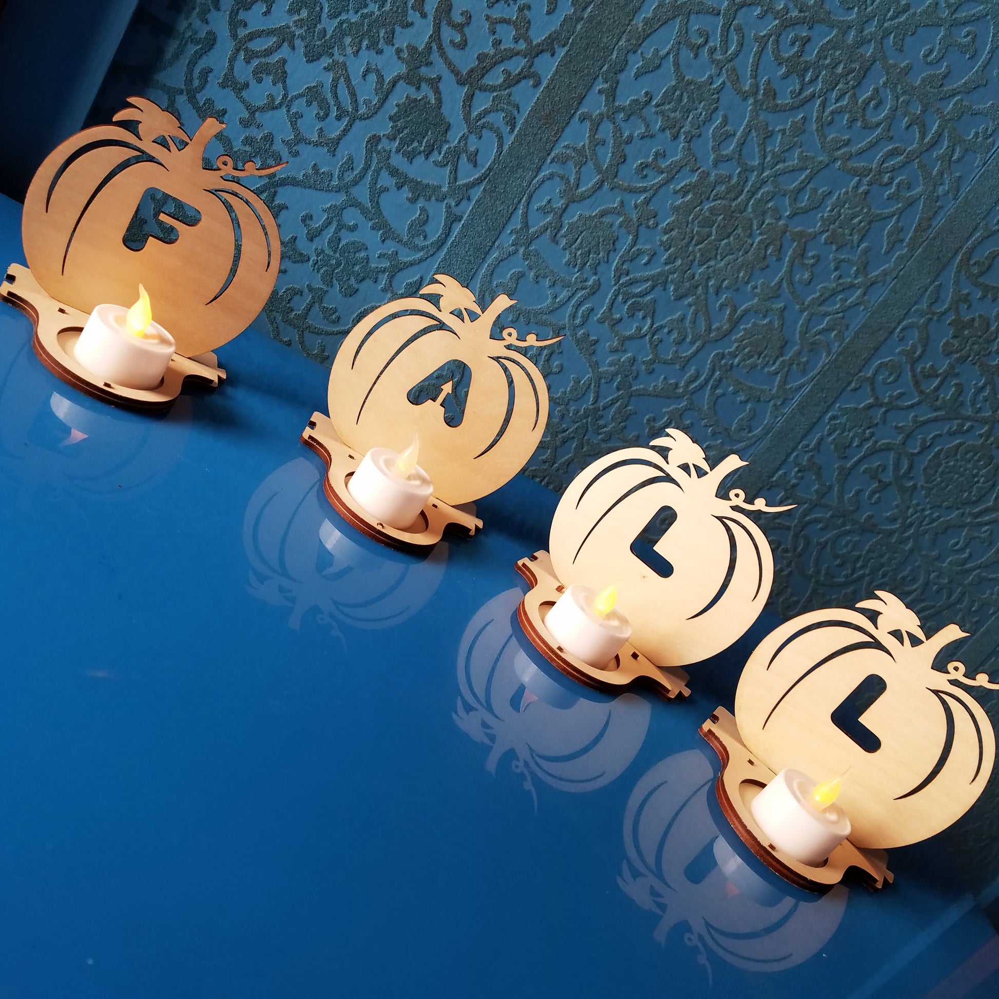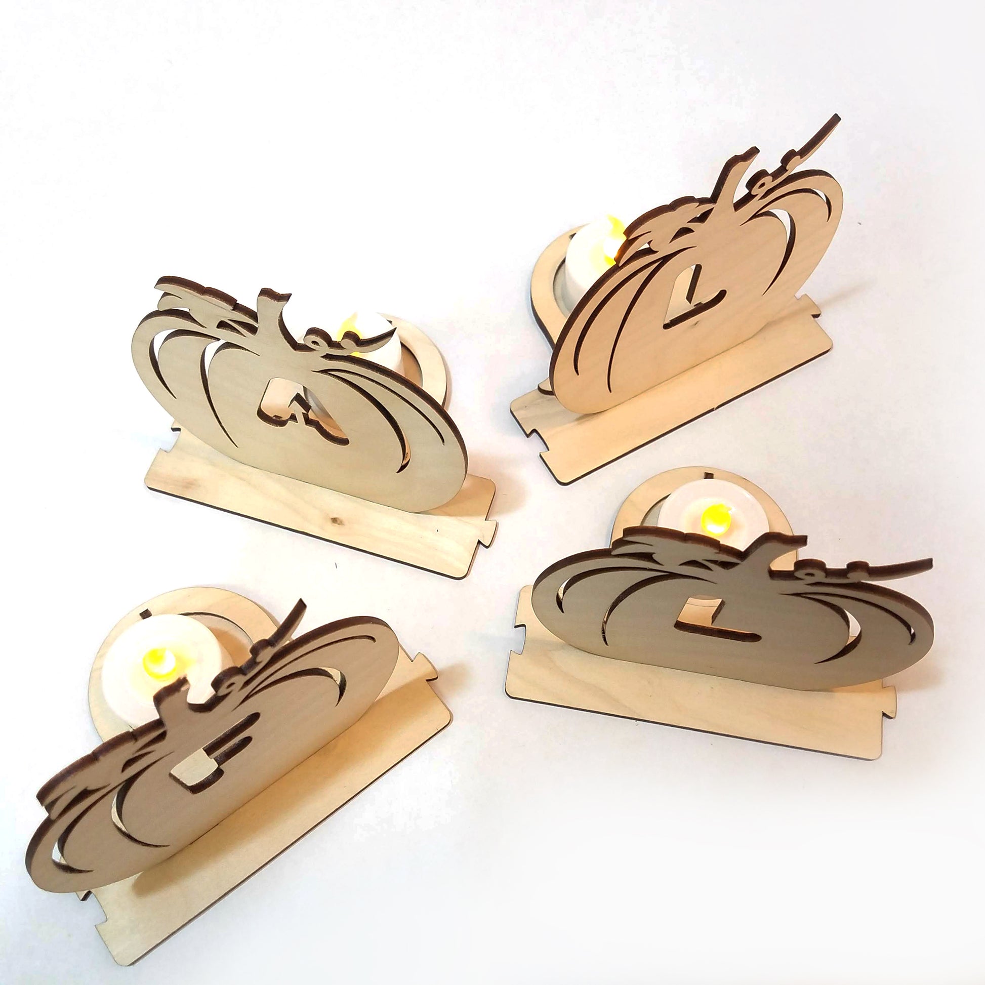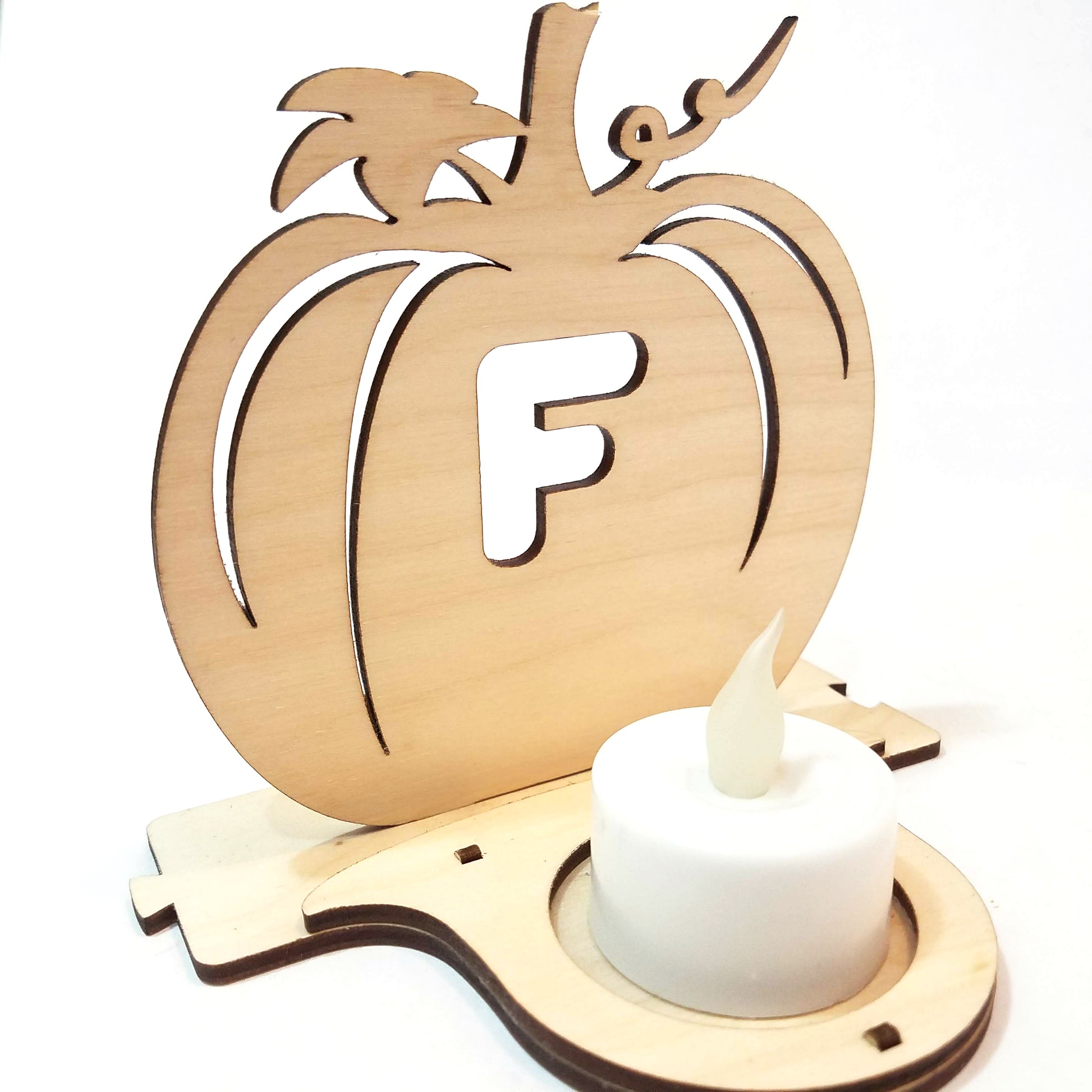 Spell out anything you can think of with these laser cut spelling pumpkins. The whole alphabet is laid out for you on the pumpkins, just cut the letters you need. The design is reversible, so you can place the candle in front or behind the pumpkin. There are a few base variants also in case you don't want to connect them together, or if you don't want to use a candle with them. You will receive a .zip file with the .svg, .eps and .dxf. The luminaries are designed to use 3mm thick material. For best results, be sure to sand your box after laser cutting.