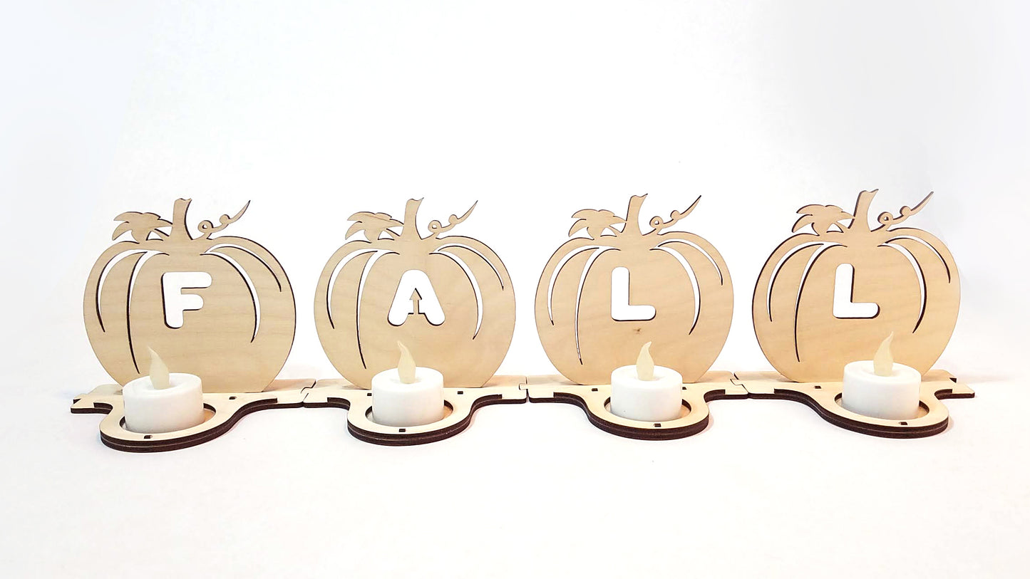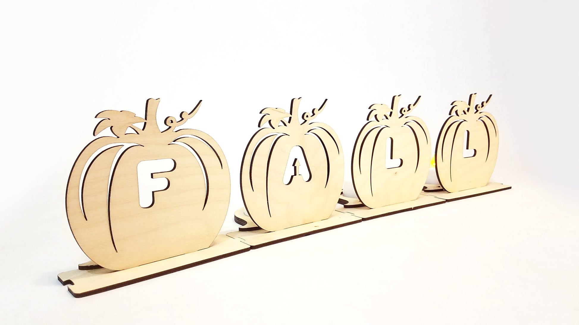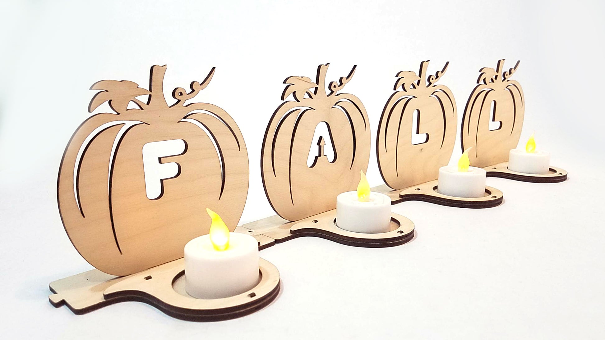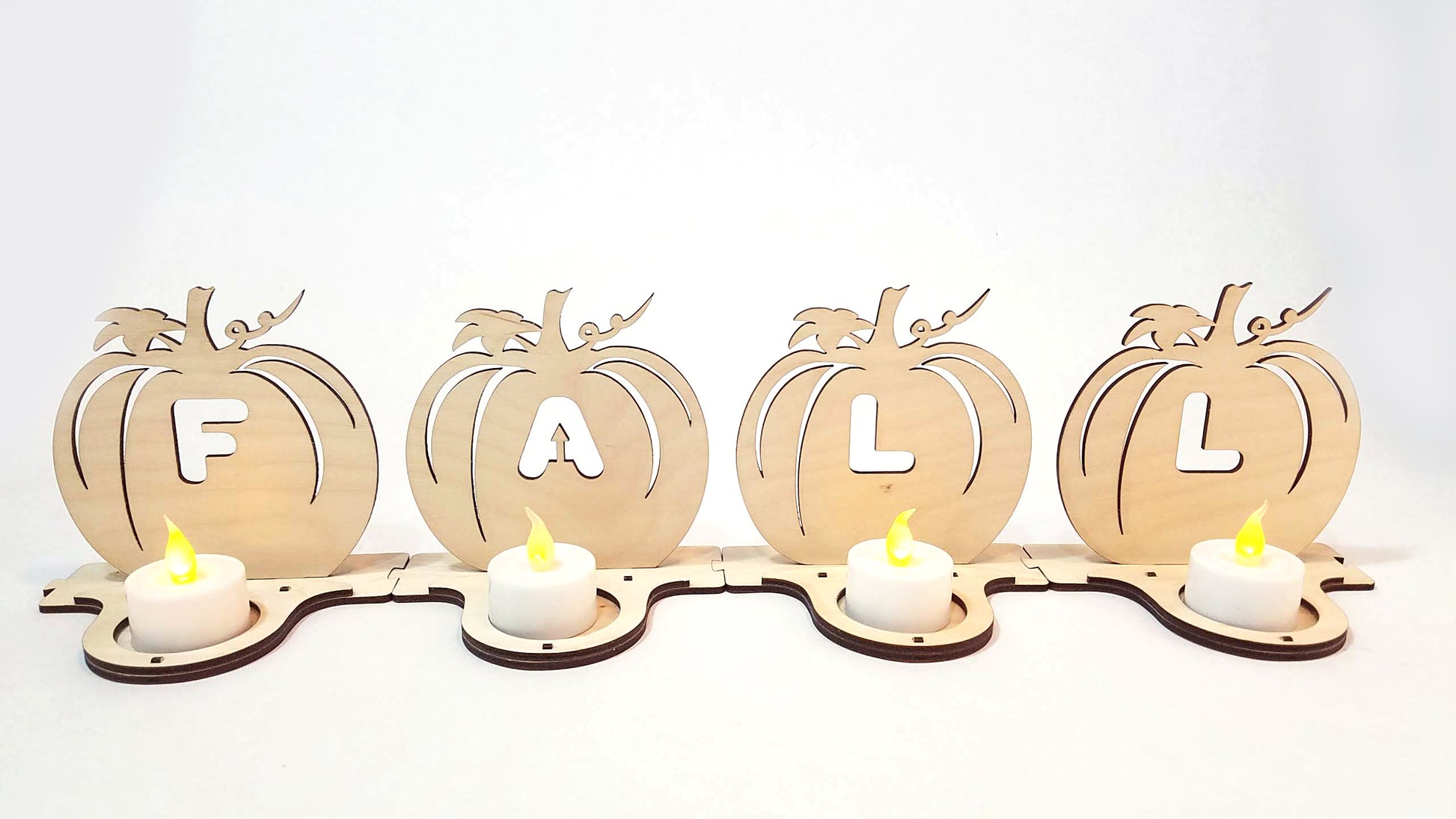 Spell out anything you can think of with these laser cut spelling pumpkins. The whole alphabet is laid out for you on the pumpkins, just cut the letters you need. The design is reversible, so you can place the candle in front or behind the pumpkin. There are a few base variants also in case you don't want to connect them together, or if you don't want to use a candle with them. You will receive a .zip file with the .svg, .eps and .dxf. The luminaries are designed to use 3mm thick material. For best results, be sure to sand your box after laser cutting.