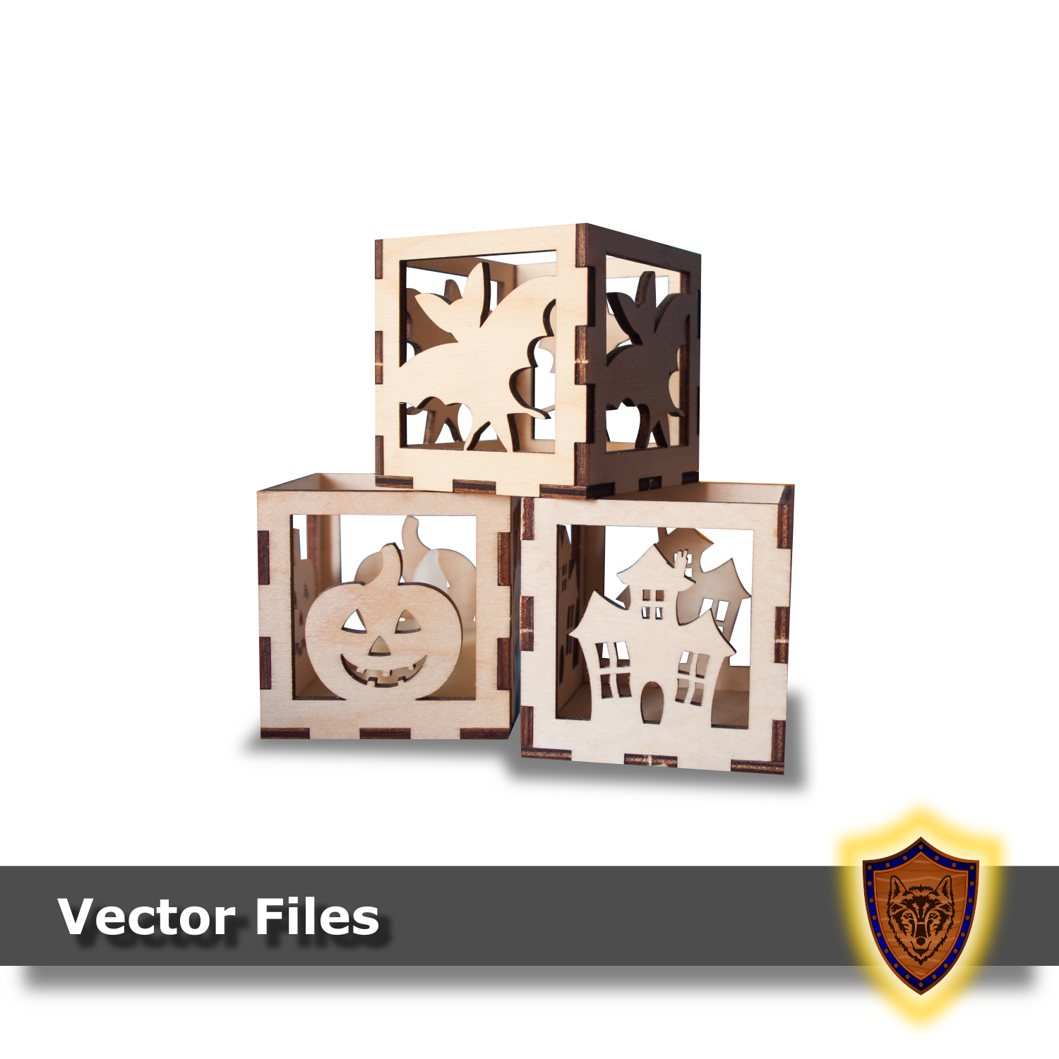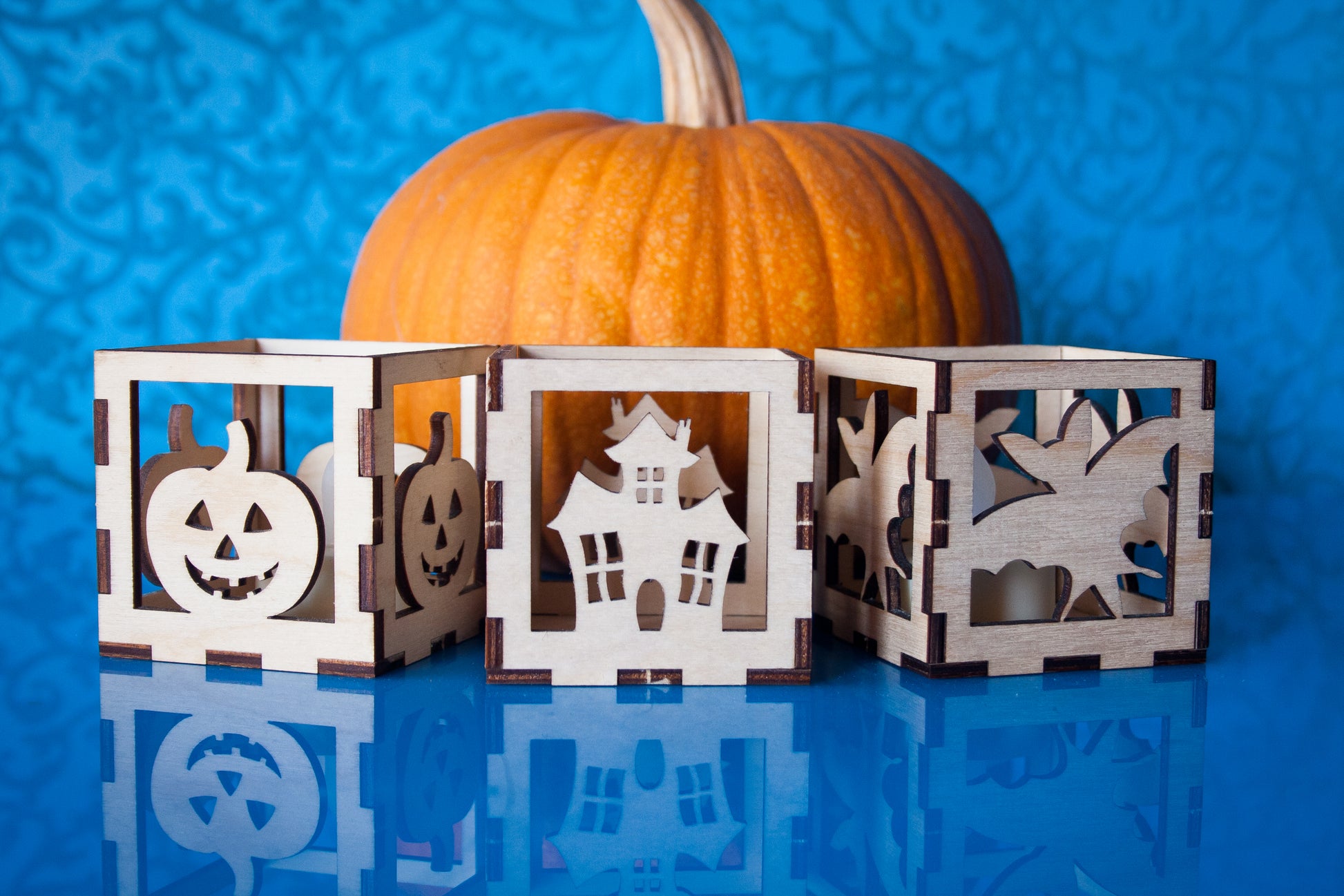 This listing is the digital file for cutting and making your very own laser cut Halloween Luminaries. There are three different designs in the file, A haunted house, a Jack o' lantern, and bat. You will receive a .zip file with the .svg, .eps and .dxf. The luminaries are designed to use 3mm thick material. For best results, be sure to sand your box after laser cutting.