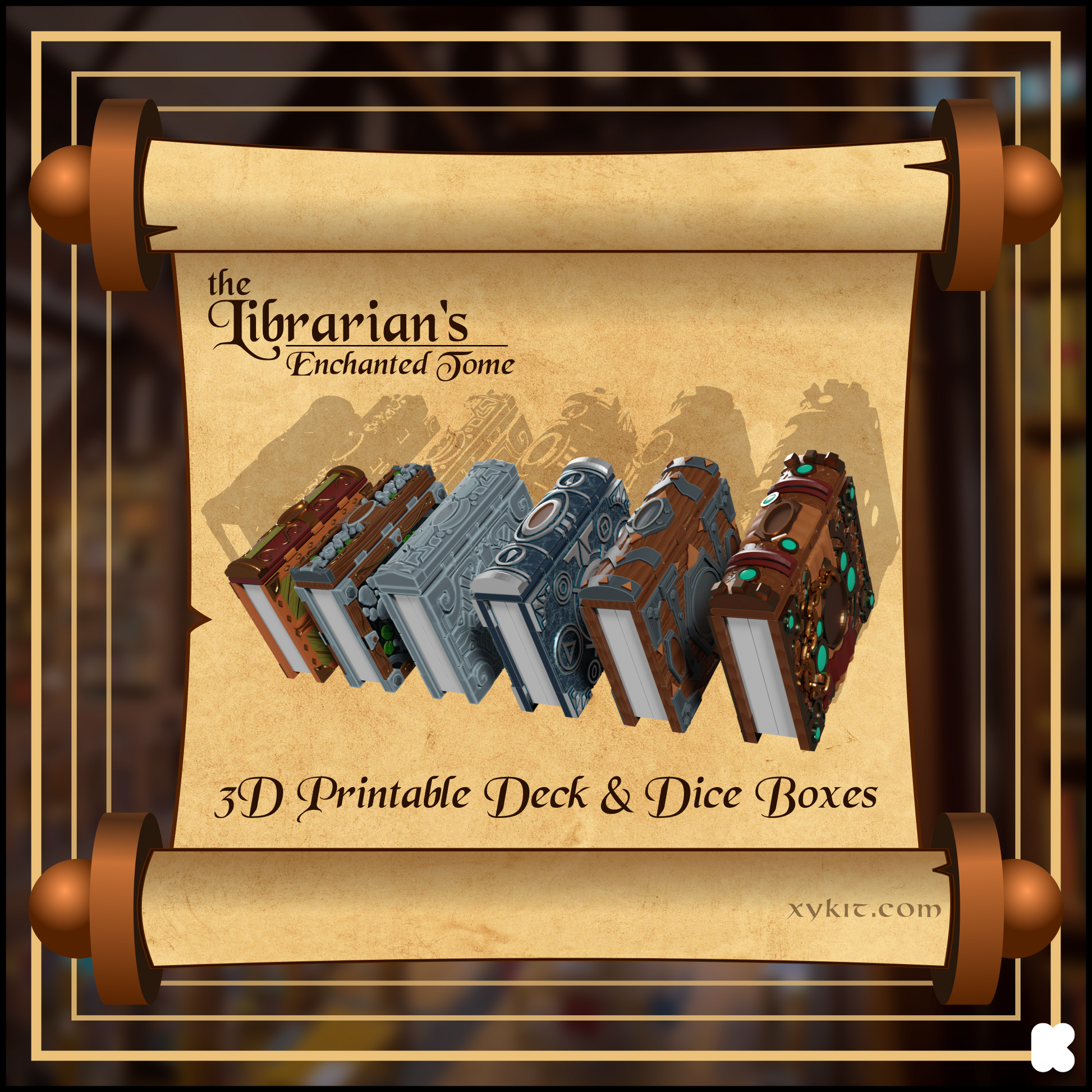 Build all the tomes in two different styles, with half pages, or full pages. Make Commander sized deck tomes, or build a GIANT store your RPG books. Customizable with a variety of interchangeable emblems, spines, and trays!