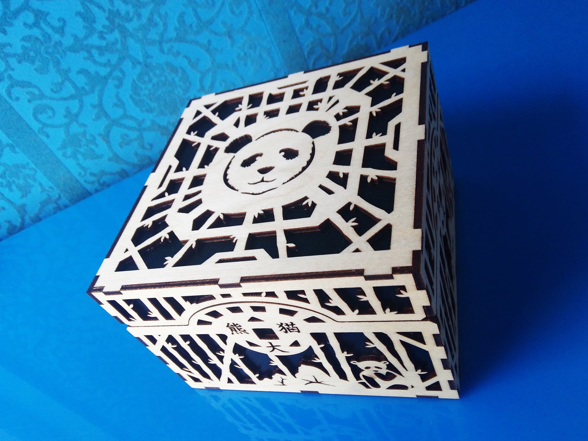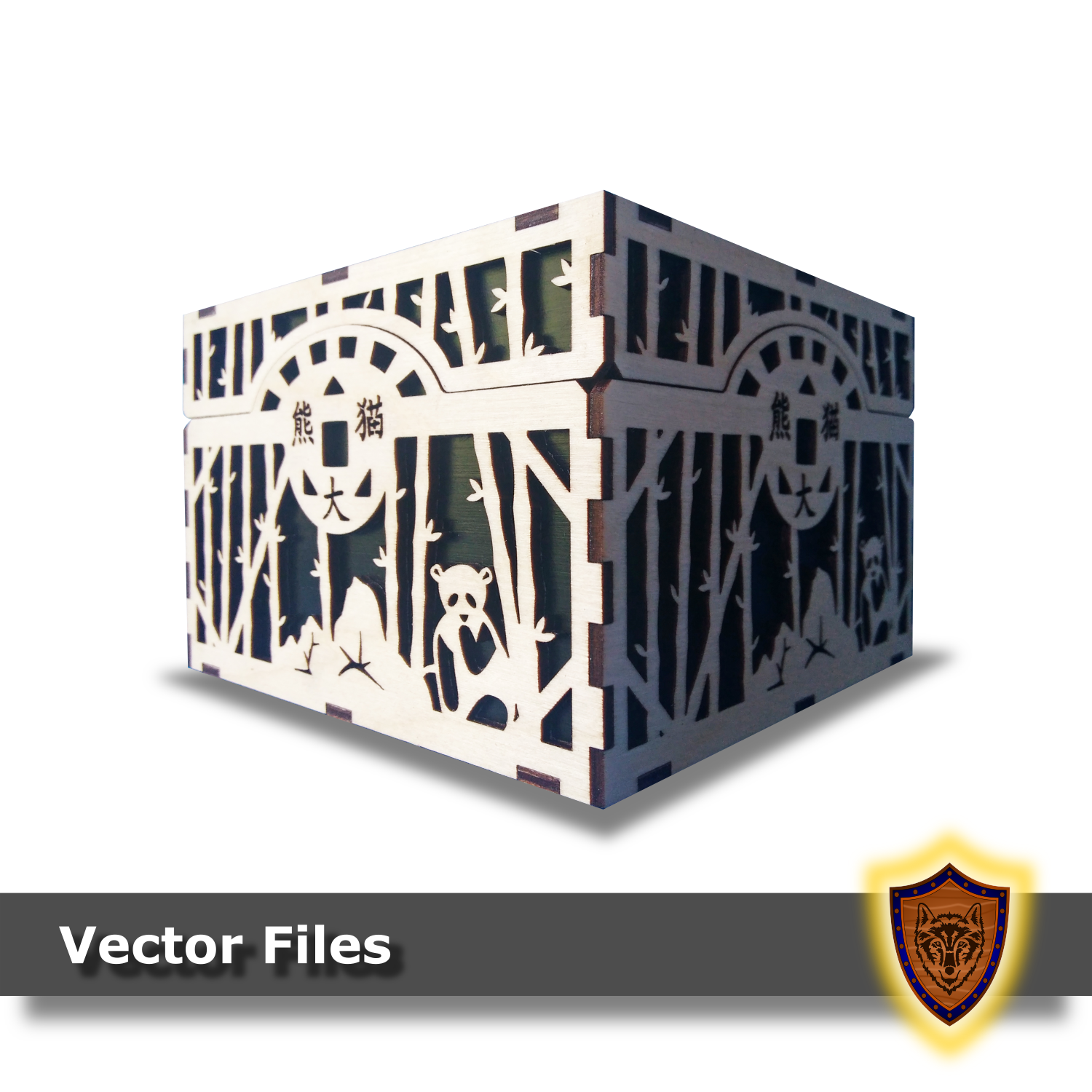 This intricately cut Fantasy Box design features Panda motifs and is designed for gamers. It can be combined with our Fantasy Box Tray files (sold seperately) to add custom storage for cards, dice, miniatures, tokens and more.