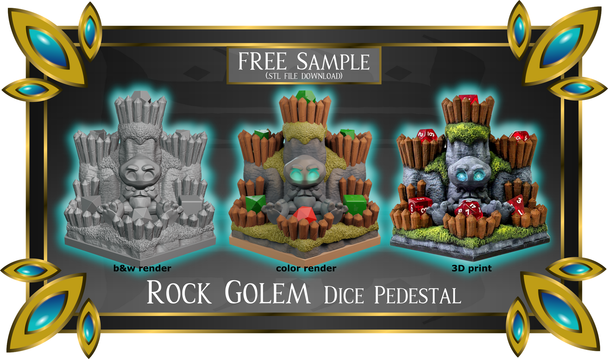 FREE PoSII - Rock Golem Dice Pedestal Sample Download - 3D print files