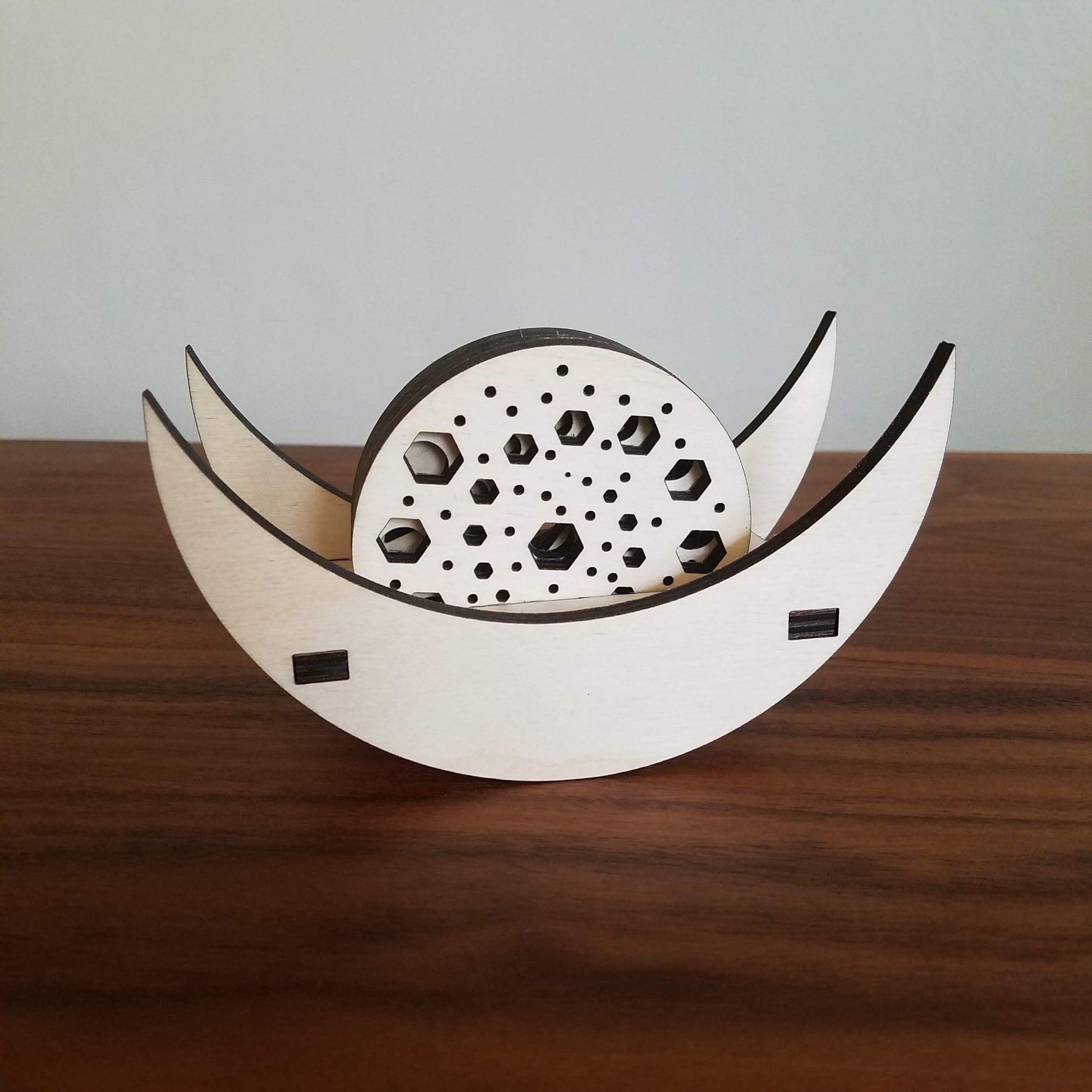 This listing is the digital file for cutting and making your very own laser cut wooden coasters with stand. You will receive a .zip file with the .svg, .eps and .dxf. The files are designed to use 6mm thick material. For best results, be sure to sand your pieces after laser cutting. We recommend gluing the stand together with either white glue, wood glue, or gel superglue.
