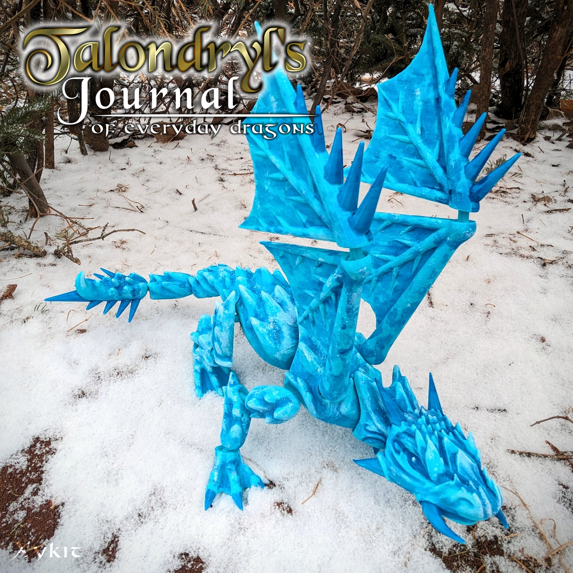 The Ground Frost Dragon, from Talondryl's Journal of Everyday Dragons is a 3D printable beast with 24 pieces and 23 points of articulation. This creature prints in multiple parts and requires assembly. You will need to print 23 of your desired tightness of ball joint clips as well.