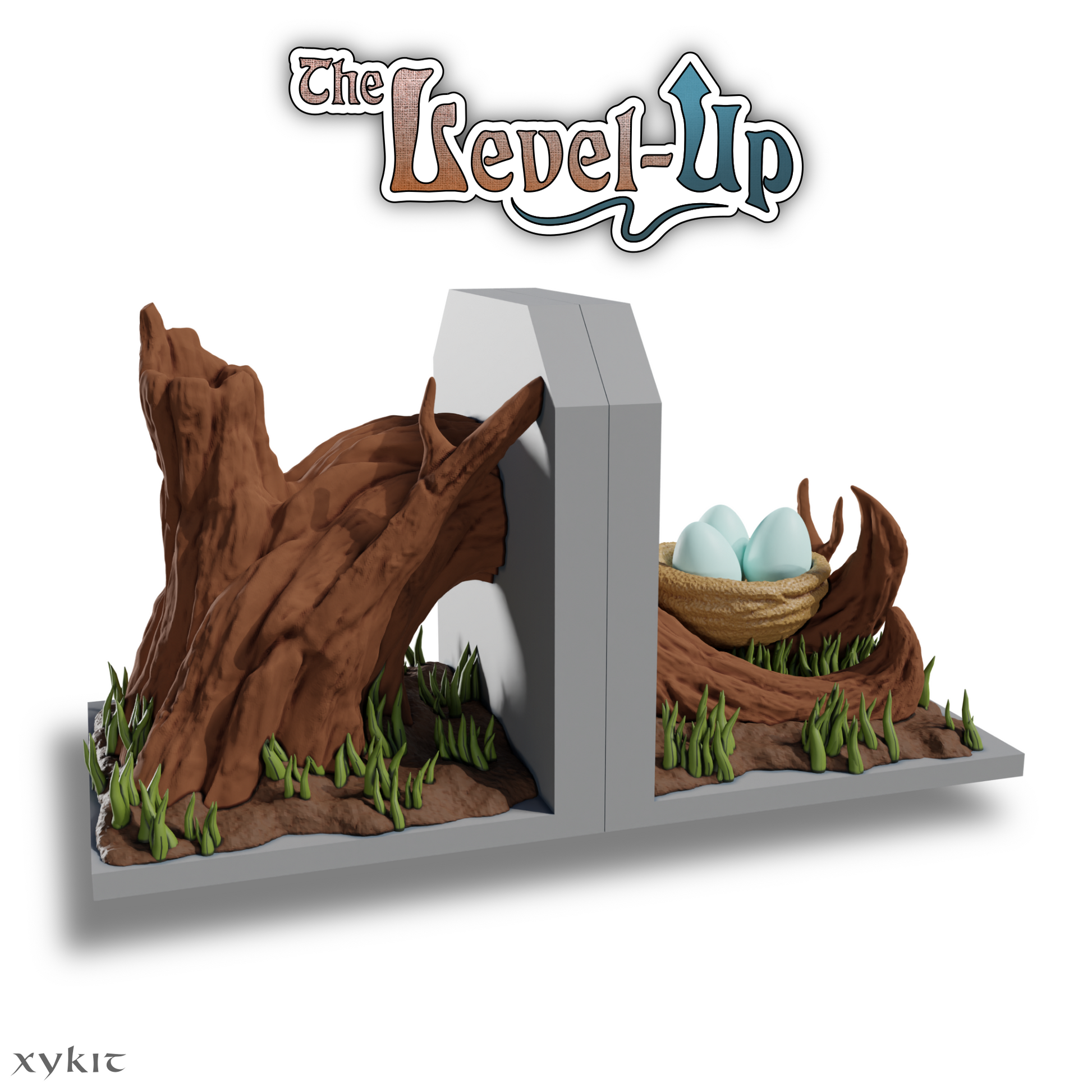 A 3D printable bookend from "The Level-Up" Kickstarter,