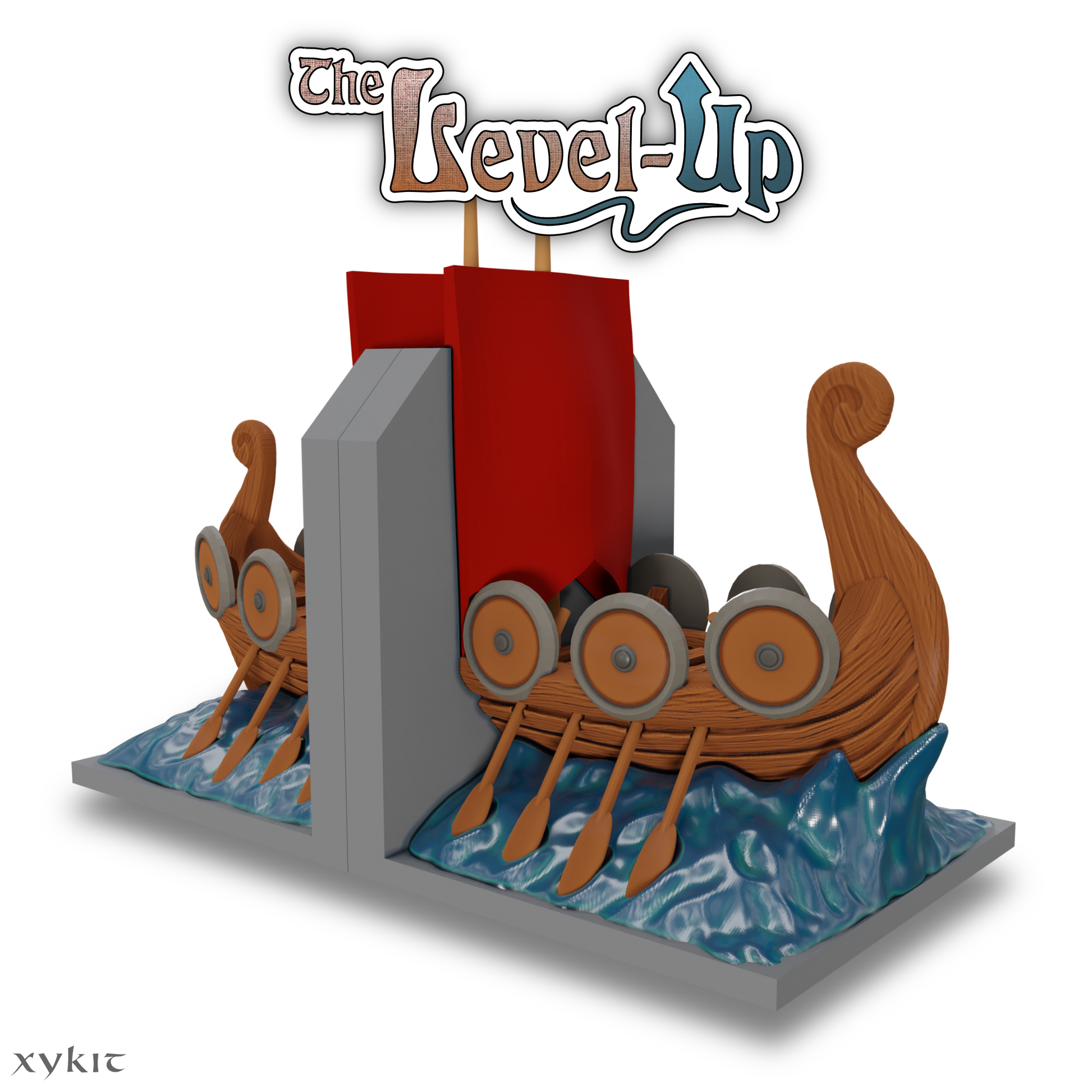 A 3D printable bookend from "The Level-Up" Kickstarter,